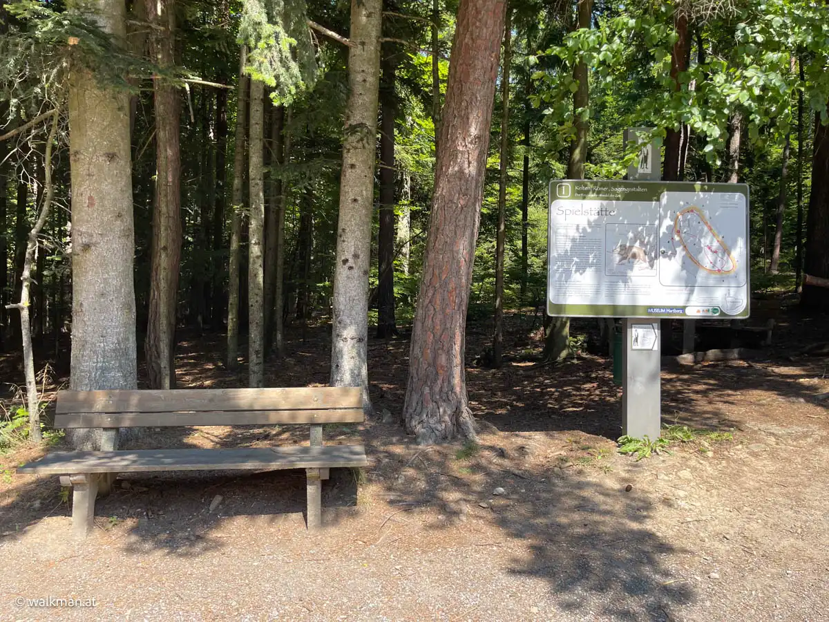 Und dann – nach einem allerletzten, extra steilen Stück – sind wir oben. Wir treten aus dem Wald raus und sehen sie. Majestätisch, imposant, alles – nur nicht zu übersehen: die ersehnte Ringwarte. Aber noch sind wir nicht dort. Weil die erste Bank, gleich links … ist zu verlockend. Jetzt mal eine kleine Pause.