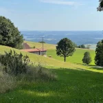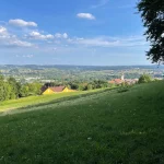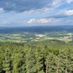 Ab und an lässt der Wald, durch den wir aktuell schreiten, auch zwischen seine Bäume hindurch blicken und gibt ein wunderschönes Panorama aufs Hartberger Land frei. Vorbei gehts auch am Hartberger Wasserspeicher (oder einem davon?!? – ich weiß es nicht).