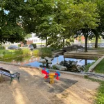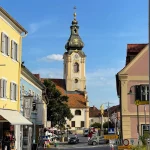 Und bald darauf waren wir wieder in der Hartberger City angekommen. Nun noch durch das Zentrum, an der Kirche vorbei, durch die Fußgängerzone mit dem „Steinernen Fluss“, Richtung Sportzentrum. Zurück zu unserem Ausgangspunkt.