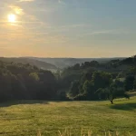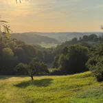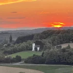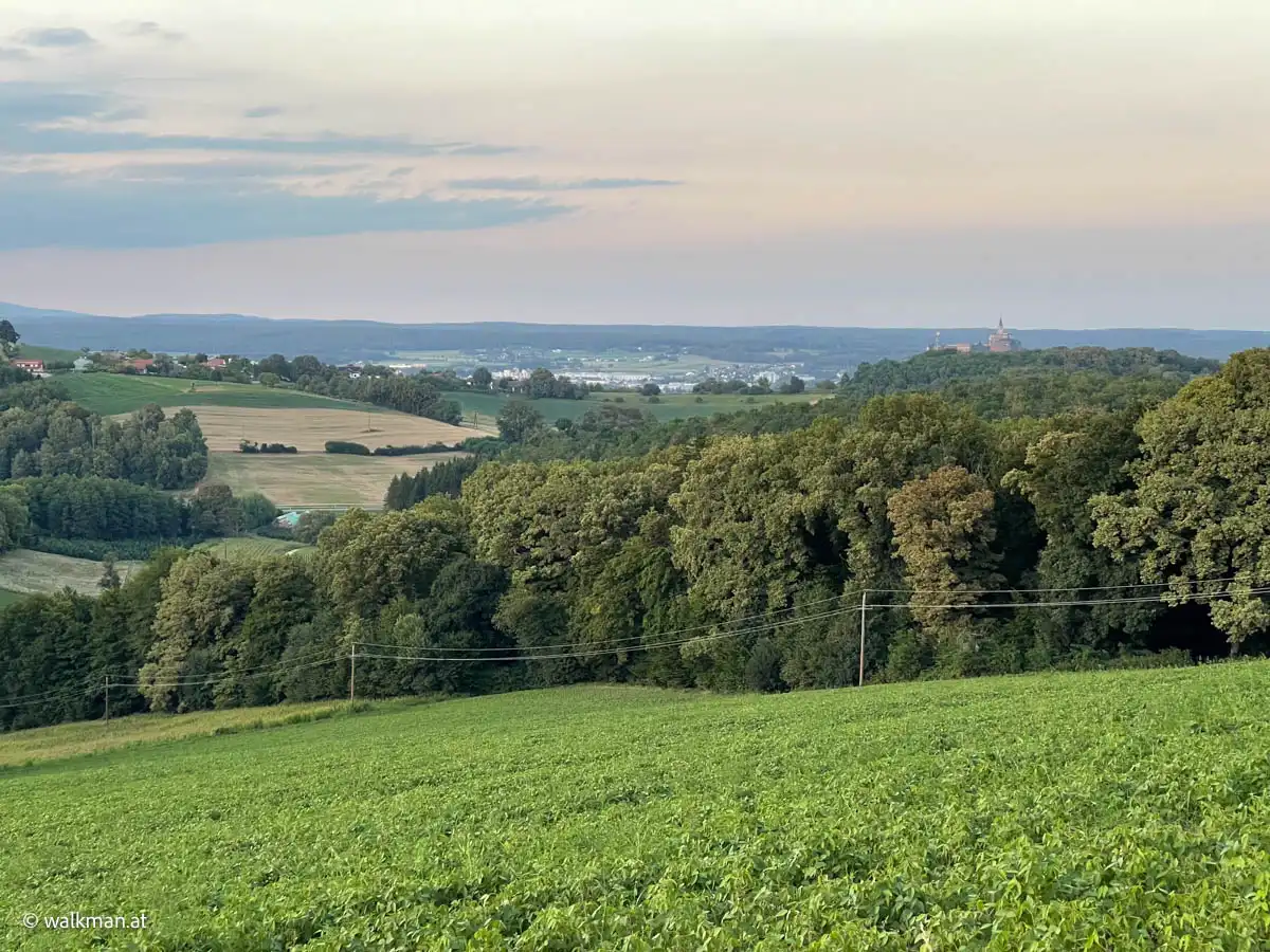 Die Sonne verschwand nun auch langsam hinter dem Horizont und tauchte die Landschaft in dieses schöne Licht, das es nur in den langsam ausklingenden Sommerabenden, im August, gibt. Und dazu abermals eine wundervolle Aussicht. Die schönste am heutigen Tag. Wieder Richtung Güssing rüber, aber diesmal mit richtig schönem breitem Panorama. Herrlich.