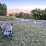 Und endlich, nach über 2 Stunden und bei Kilometer 8,1 bin ich bei der Bank angelangt. Und ein wenig enttäuscht. Für schöne Fotos ist es jetzt zu dunkel. Also dann eben ein andermal. Und niedersetzen werde ich mich jetzt auch nicht mehr. Sonst mag ich nicht mehr aufstehen.