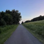 Und so war es dann auch. Der nächste Abschnitt, bis Kilometer 7,3 war weitgehend ereignislos und nur von ein paar Fotos unterbrochen. Der Sonnenuntergang musste natürlich auch ins Handy. Und was wäre dazu besser geeignet als eine gegenüberliegende Hügelgruppe, hinter der die Sonne verschwindet. Genauso war es.