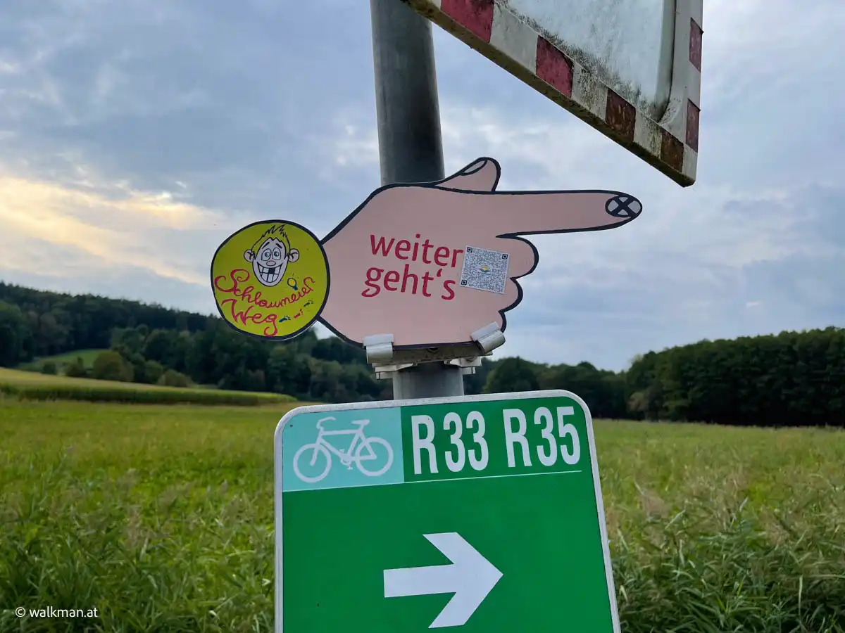Der Schlaumeierweg in Sebersdorf. Schon zweimal hatte ich diesen Weg bei einer anderen Tour gekreuzt und/oder gestreift. Doch heute sollte es nun endlich so weit sein. Auch dieser Weg will begangen sein und darf in meiner „H2O-Sammlung“ nicht fehlen. Eine leichte Route, auf der man sich nicht verirren kann. Dachte ich …