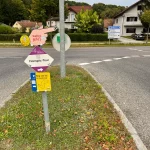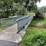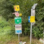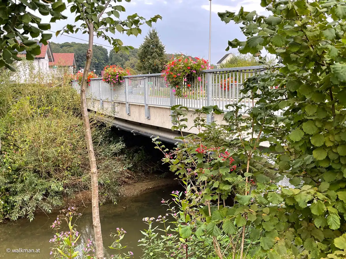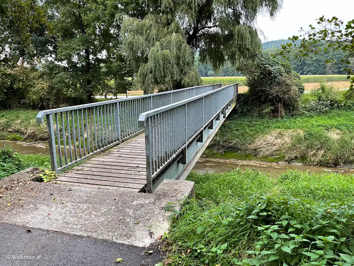 1. Da glaubt man ja, dass die leichtesten Touren die einfachsten sind. Und gerade bei dieser Tour vergeh ich mich doch komplett, um nahezu einen Kilometer in die falsche Richtung. Zu erkennen am „Ausreisser“ in der Routen-Abbildung. Heißt so viel wie: Da stehst du vor der Brücke. Fotografierst diese. Du siehst den Pfeil, der nach rechts weist. Du fotografierst ihn auch noch. Und gehst dann geradeaus weiter … ein richtiger Schlaumeier halt …