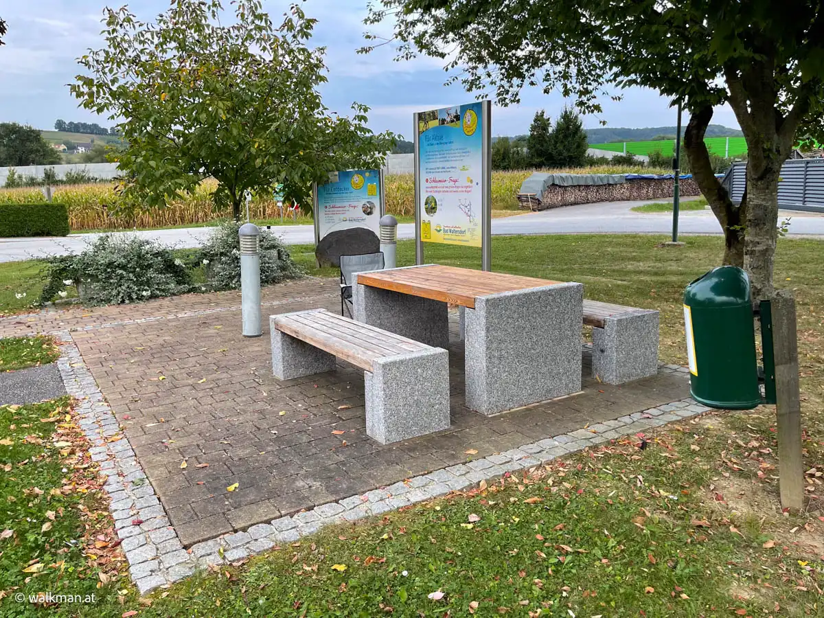 Am Weg befinden sich, wie schon erwähnt, sieben Stationen mit Quizfragen. Vorher in der H2O einen „Schlaumeier-Pass“ abholen, die Antworten zu den Fragen der Stationen am Weg ausfüllen. Mit der Abgabe des Passes in der H2O hat man die Chance auf einen Gewinn. Nette Idee.