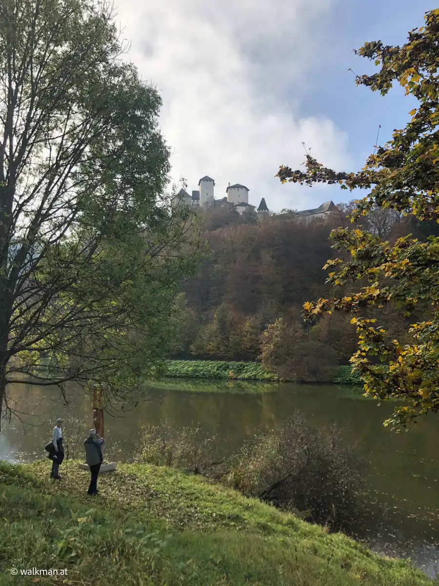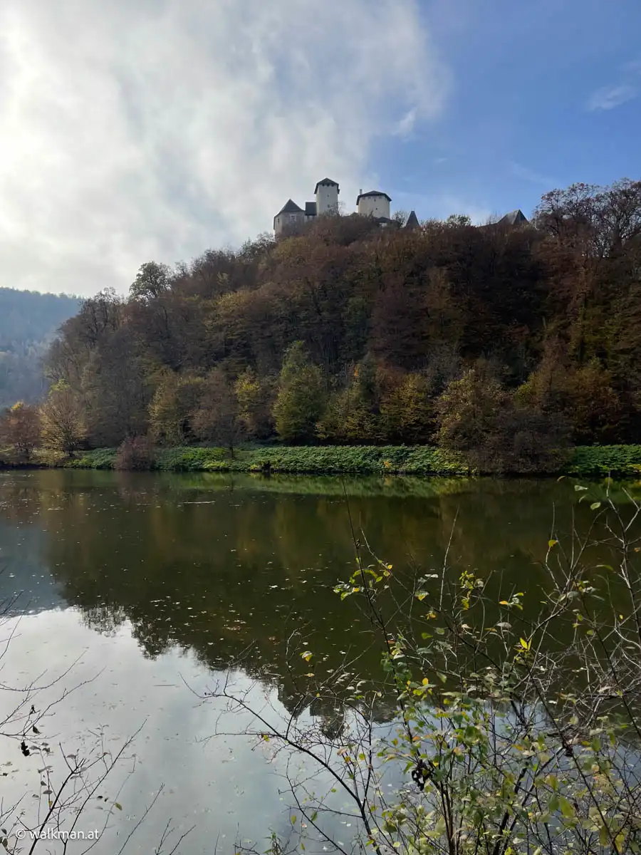 Oberhalb des Teichs, am Berg, thront die ehemalige Tempelritterburg. Bei unserer Ankunft waren noch Reste des morgendlichen Bodennebels vorhanden, was dem ganzen Szenario eine gewisse Romantik und Mystik verlieh. Und vor allem auch für tolle Fotos sorgte.