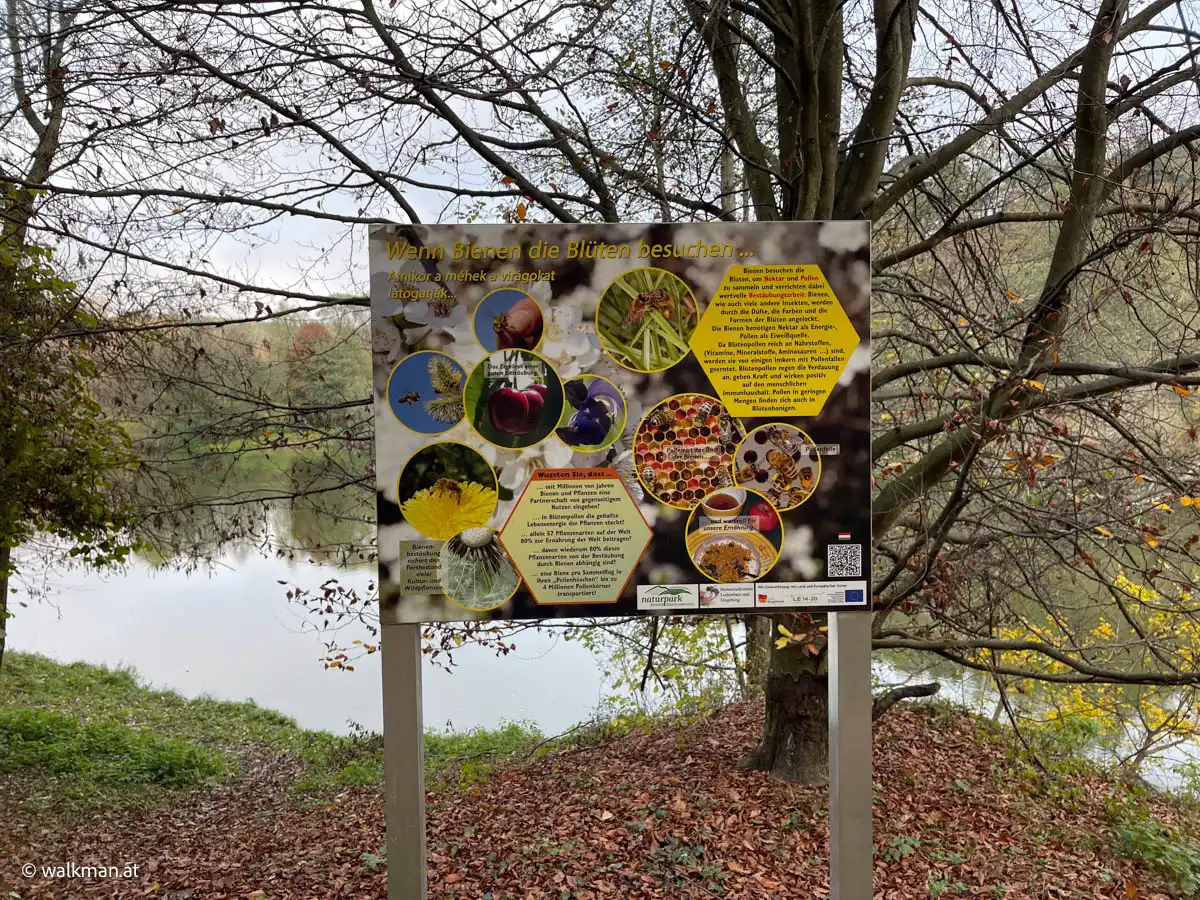 Weiters verfügt die Uferstrecke über einen „Bienenweg“. Um den Teich sind in regelmäßigen Abständen Infotafeln aufgestellt, die dem Spaziergänger & Leser Wissenswertes über die Welt unserer fleißigen Bienen vermitteln. Eine tolle Idee.