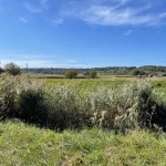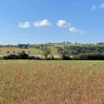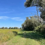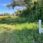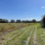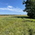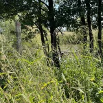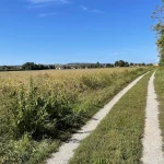 Links eine hohe Hecke, rechts der Rodlingbach, wandere ich am Ufer Richtung Süden bis der Weg abermals einen „Knick“ nach links macht. Den mache ich mit. Nun geht’s an Wiesen und Feldern vorbei übers Land. Ab und zu auch Hecke und Gebüsch.