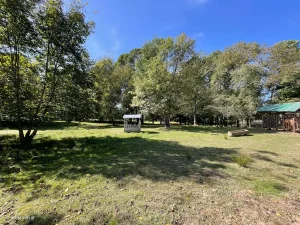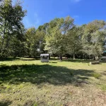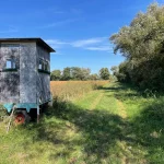 Durch eine gemähte Wiese, oder besser gesagt „Anlage“, marschiere ich die paar Meter rüber zur Teichanlage. Hier gibt es sichtlich noch mehr zu entdecken. Ein alter Pferdewagen steht am Fuß eines Hügels.