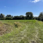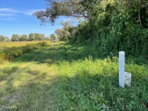 Durch teils hohes Gras erreiche ich dann den südlichsten Punkt dieses Zipfels. Auf der Straße nach „Szentperterfa“. Der Ort, bereits in Ungarn liegend, ist in etwa 500 Metern Entfernung zu erkennen. Ebenso die Überbleibsel des österreichisch-ungarischen Grenzüberganges.
