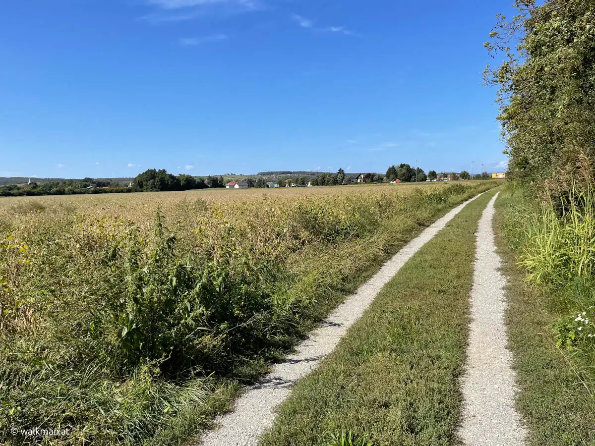 Ein wirklich schönes Platzerl. Aber meine Erkundungstour geht weiter. Vom Teich weg, weiter Richtung Norden, den Weg entlang. An der nächsten Kreuzung biege ich links weg, nach Westen.