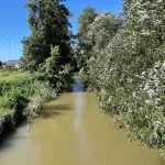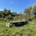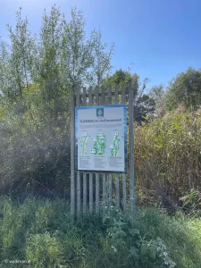 Auf Infotafeln finde ich hier in regelmäßigen Abständen Informationen rund um die naturkonforme Bebauung von Wasserläufen. Scheint mal ein grosses Projekt gewesen zu sein. Denn mittlerweile sind die Tafeln alles andere als neu, oder gepflegt. Manche bereits umgefallen, ohne wieder aufgestellt worden zu sein. Abermals eine Art „Lost-Place“-Charakter.