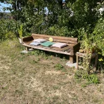 Eine Sitzgruppe präsentiert sich kurz vor dem Pfad, der zum Teich selbst hinunter, bzw. hinüber führt. Eigentlich steht sie ja keine fünf Meter vom Ufer. Was ich dann sehen darf, gefällt mir außerordentlich.