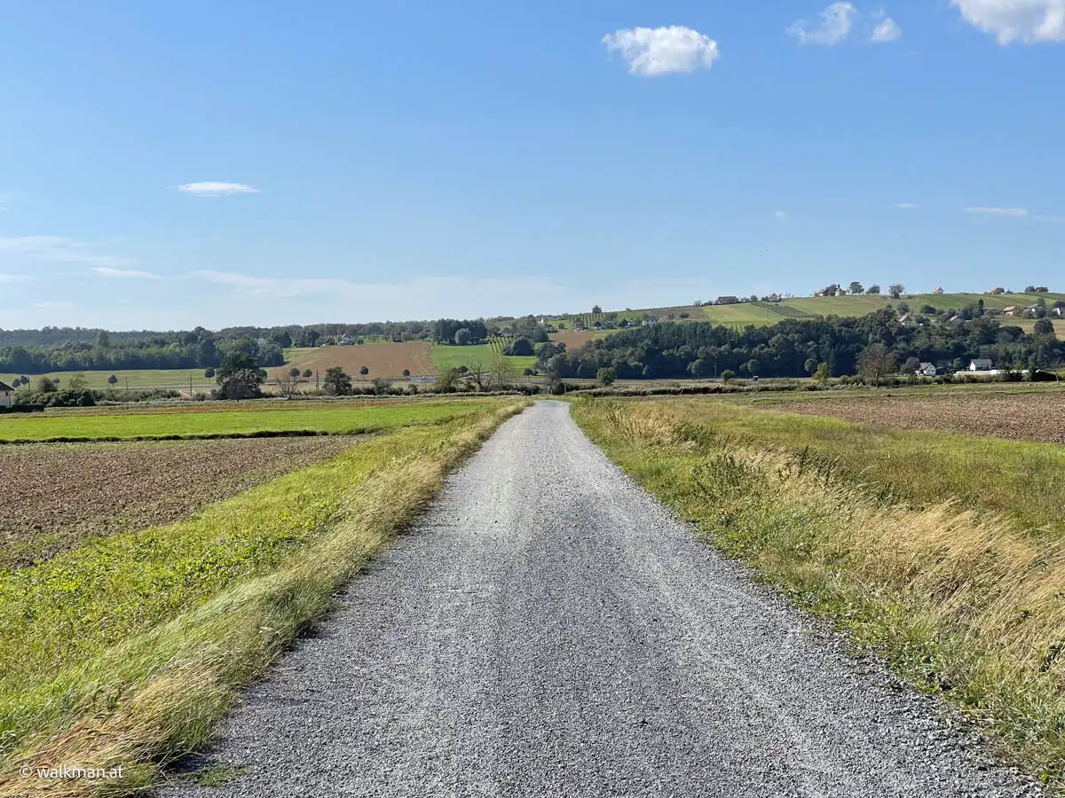 Kurze Zeit später sagt mir mein Handy aber schon wieder: recht abbiegen. Ich habe nun den nördlichsten Punkt meiner Route erreicht. Nun geht es wieder zurück nach Eberau. Die finalen Kilometer meiner heutigen Tour. Hier wandere ich nun wirklich flott dahin.