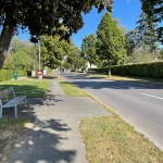 Die nun die Straße zurück nach Eberau führt. Rechts wäre es Richtung Bildein gegangen. Da waren wir schon gewandert vor ein paar Tagen. In entgegen gesetzter Richtung, von Bildein kommend. Die Bäume an der linken Seite bieten mir, auf diesem Abschnitt der Strecke, auch ein wenig Schutz vor der frischen Brise. Gefällt mir.