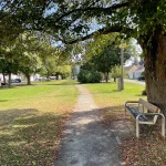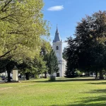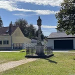 Hier spaziere ich noch gemütlich durch den schön angelegten Park, mache einige Fotos von Bänken, Bäumen, der Mariensäule und dem Pranger, der hier als Relikt einer dunklen Vergangenheit, steht. Und natürlich von der schönen Kirche am Ende des Parks. Und auch vom daneben stehenden Kriegerdenkmal. Muss sein. Der Vollständigkeit halber.