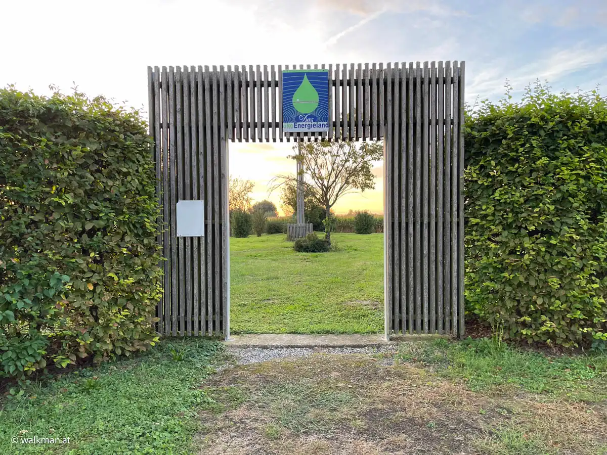 Eines der typischen „Tore“ des „Ökolandes“, die man hier im Südburgenland immer wieder findet, lacht mir bereits aus einiger Entfernung entgegen. Und so, wie meist, bedeutet das „hier ist was zum gucken!?“.