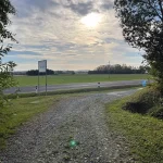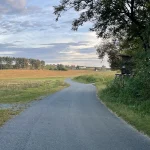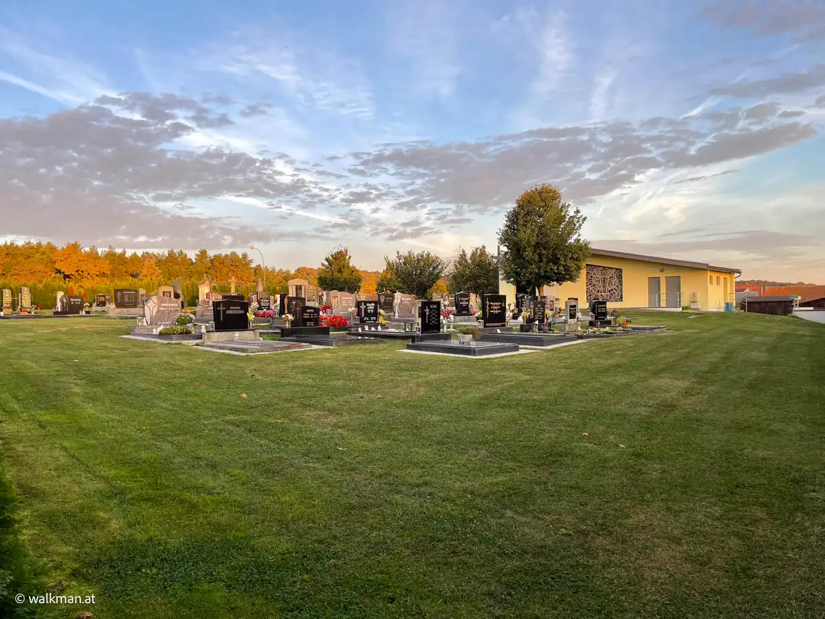 Pause, in Form von hinsetzen und sinnieren, mache ich aber keine. War ja erst vorhin losgegangen. Also weiter geht’s, die geplante Route entlang. An der Bundesstraße angekommen, rechts halten, am örtlichen Friedhof vorbei und gleich wieder links, die nächste Gasse, rein.
