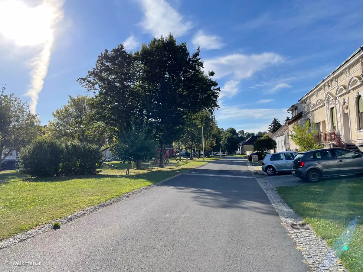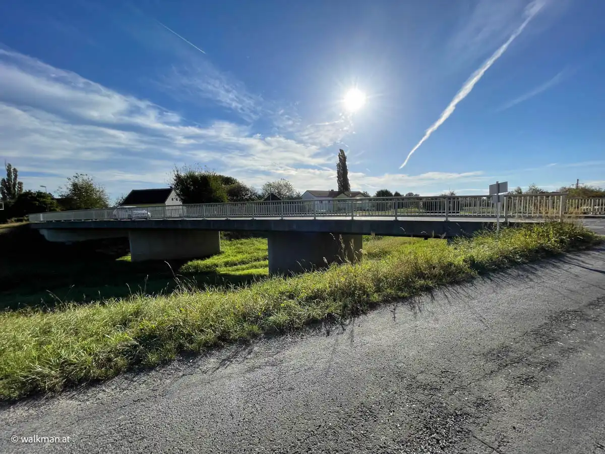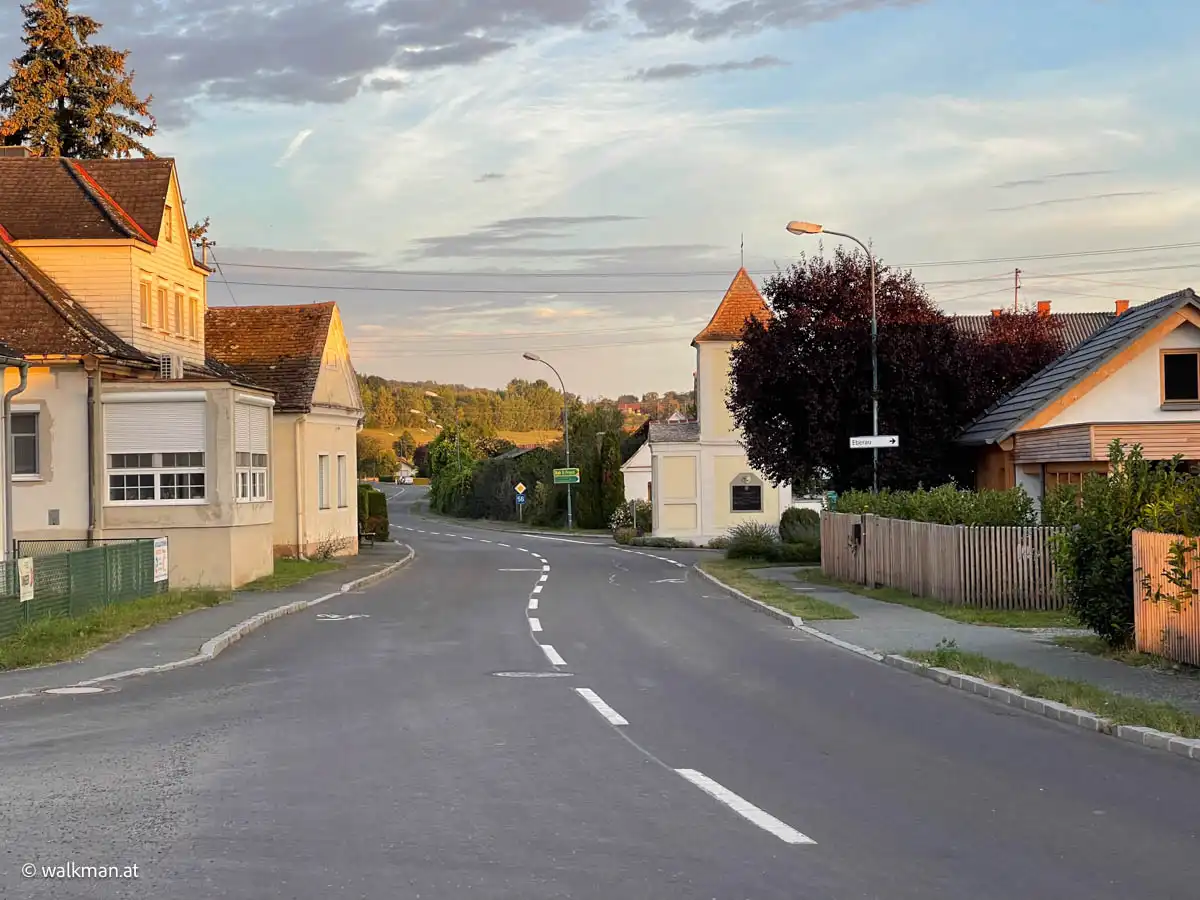 Mittlerweile habe ich die Häuser von Eberau wieder erreicht. Und an der Brücke angekommen halte ich mich nach links, über die Brücke drüber, dann gleich wieder rechts rein. Diese Gasse kenne ich noch nicht, also hier auch mal durch. Wer möchte, kann aber hier genauso gut der Bundesstraße folgen. Ist kürzer und führt genauso zum Ziel.