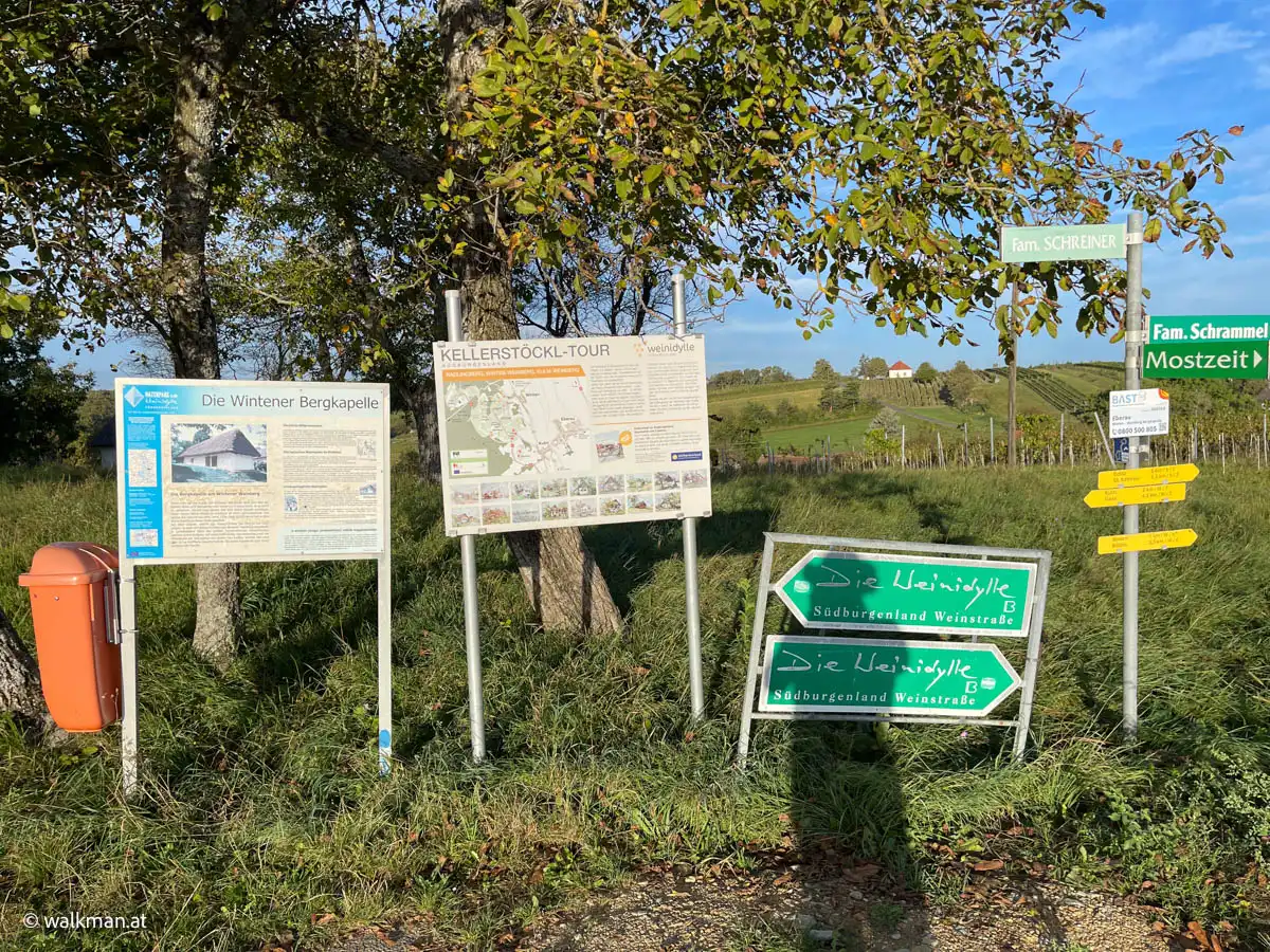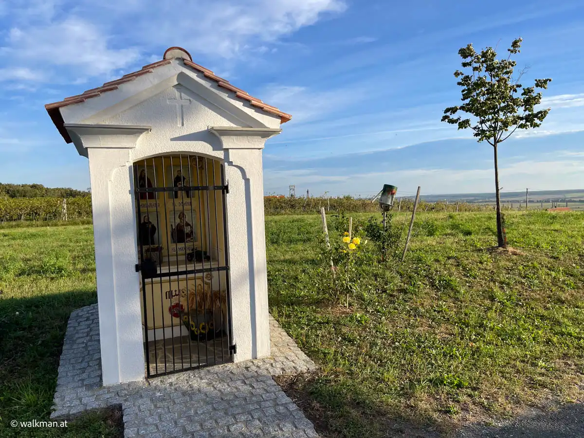 Vorbei an alten und neuen Kellerstöckeln. An Obstbäumen und Weingärten. Und doch weiterhin zwischen Wiesen in der Natur wandernd. Herrlich.