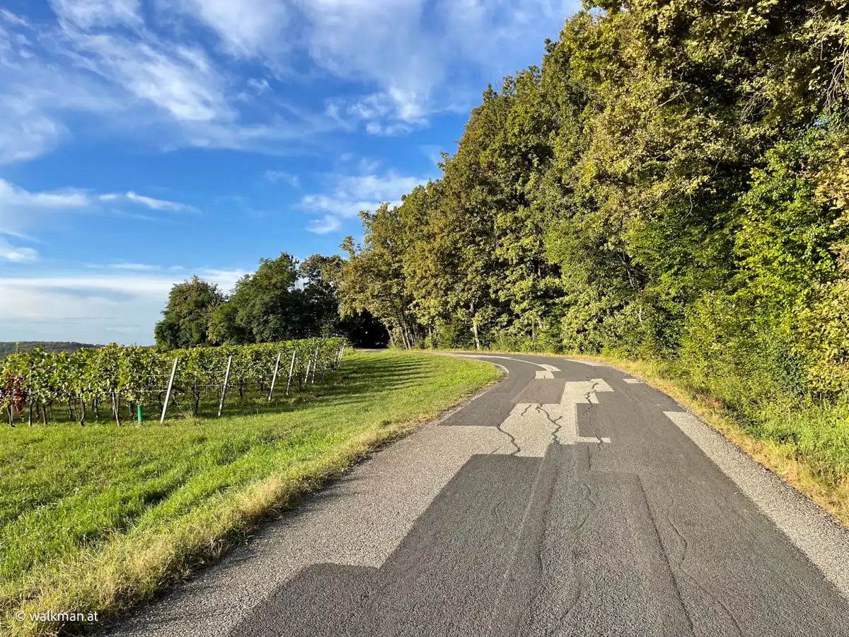 Mit den Gedanken an meine Zeit in Wien und den damit verbundenen Geschichten erreiche in kurze Zeit später dann auch schon den höchsten Punkt der Tour. Ja, die Geschichten aus Wien. Die alleine würden ein Buch füllen. Egal. Ich bin jetzt am Weinberg im Südburgenland und nicht in den Wiener Straßenschluchten.