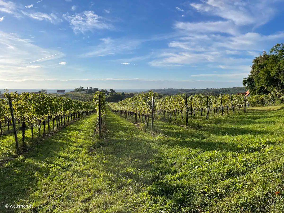Und dennoch, die Mühe ist es allemal wert. Mit jedem Schritt eröffnet sich auch eine geniale Aussicht. Weit über das Land schweift der Blick. Hier präsentiert sich das Südburgenland von seiner schönsten Seite.