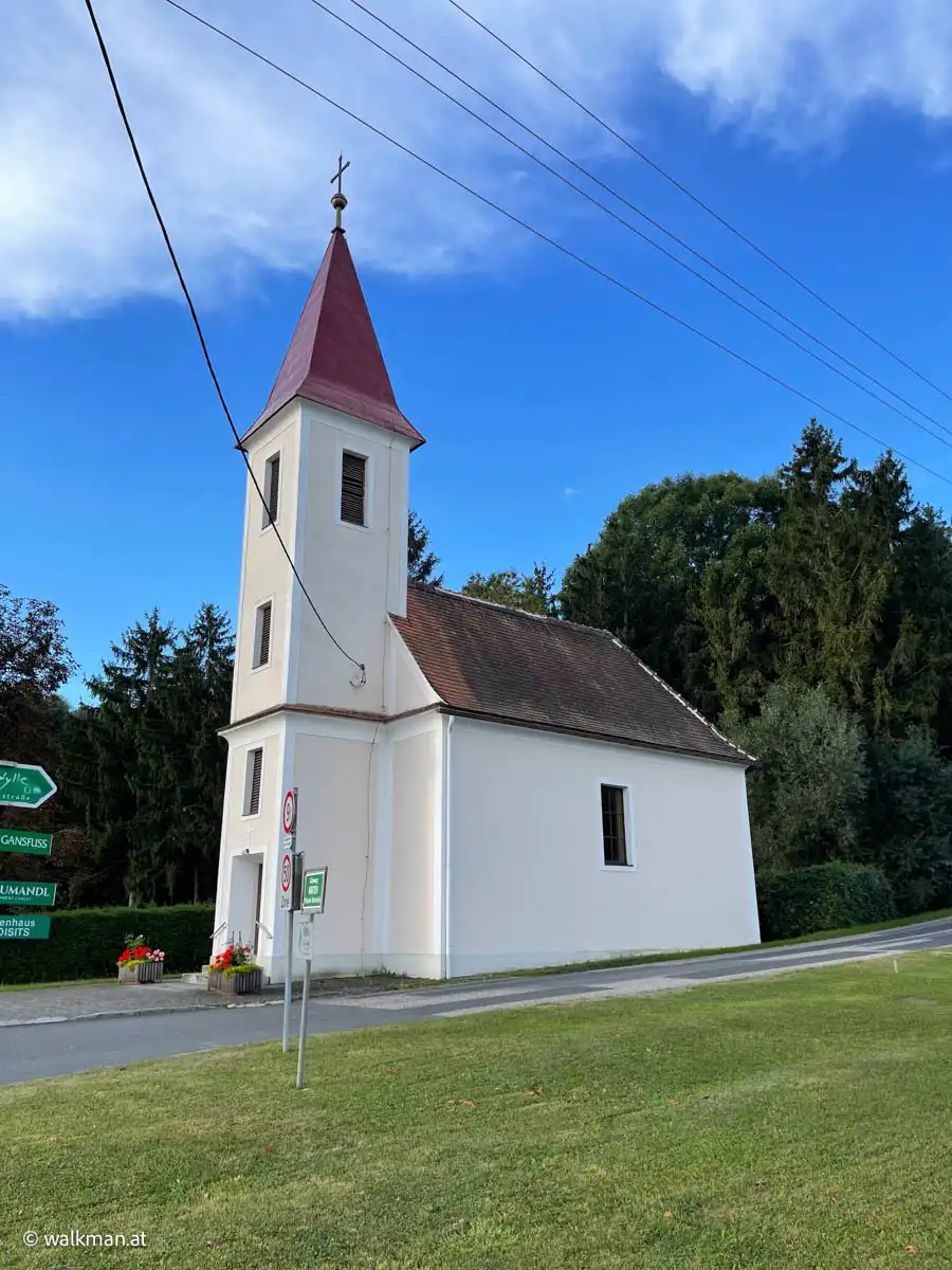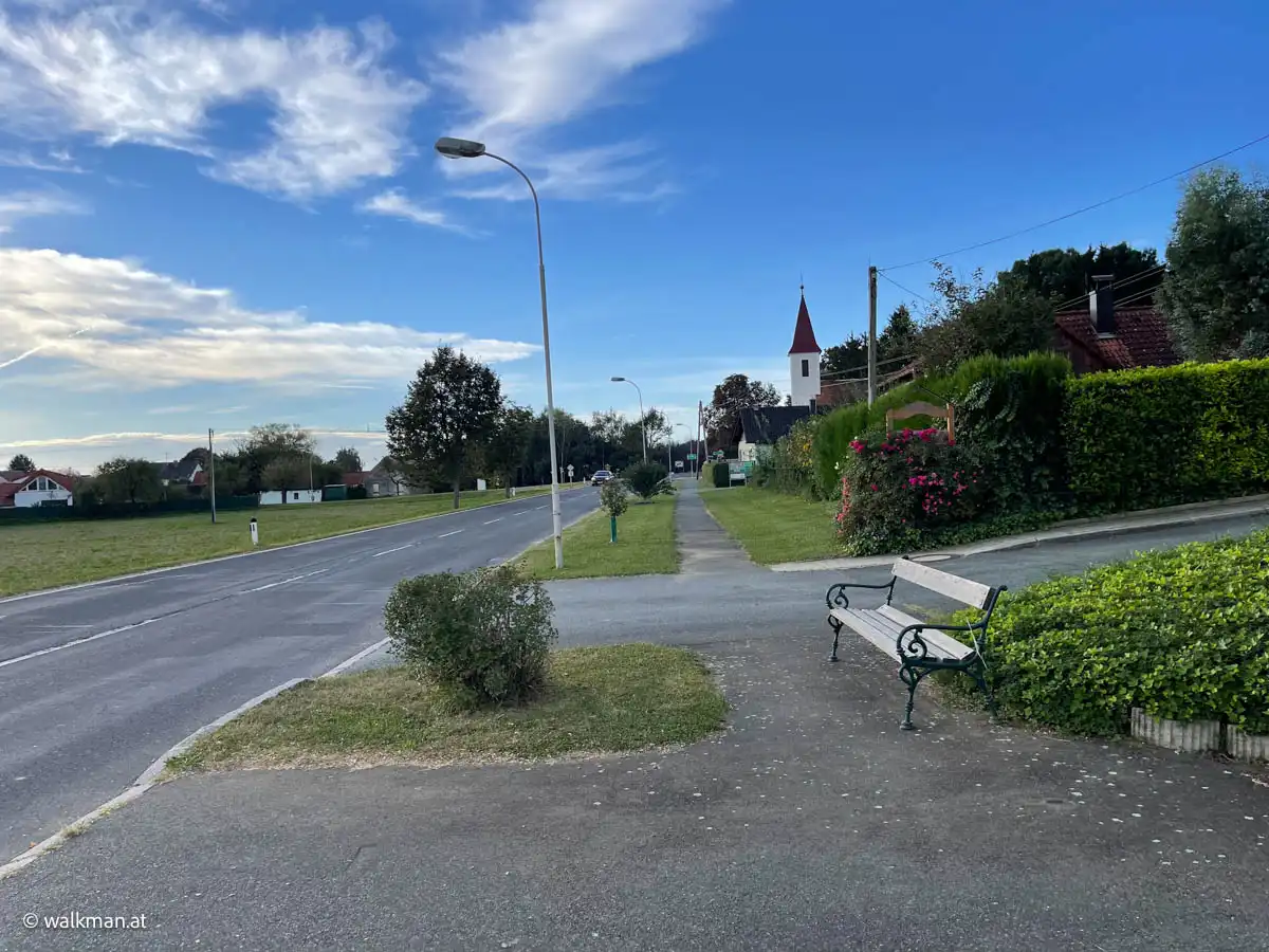 An der Straße entlang, vorbei an einer kleinen Kapelle, an den Häusern von „Winten“ und der örtlichen Kirche, durchwandere ich den Ort.