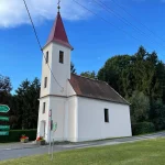 Nach einem Bogen bin ich wieder an der Bundesstraße und bald wieder – rechts hinein – auch schon am Hauptplatz und bei der Kirche angekommen. Hier herrscht schon ein wenig geschäftiges Treiben beim örtlichen Bäcker. Die Eberauer holen ihr frisches, herrlich duftendes, Frühstücksgebäck ab.
