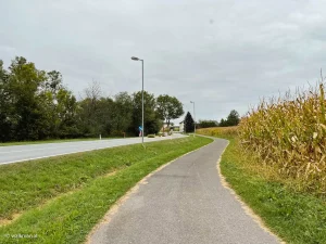 Bald hatten wir das Ortsende erreicht und wanderten – wie sollte es anders sein – an Maisfeldern vorbei. Das war mir jetzt schon extra aufgefallen. Überall wird Mais angebaut. In Hülle und Fülle. Sehr oft offensichtlich die neuen, drei Meter und mehr hohen, Gentech-Sorten.