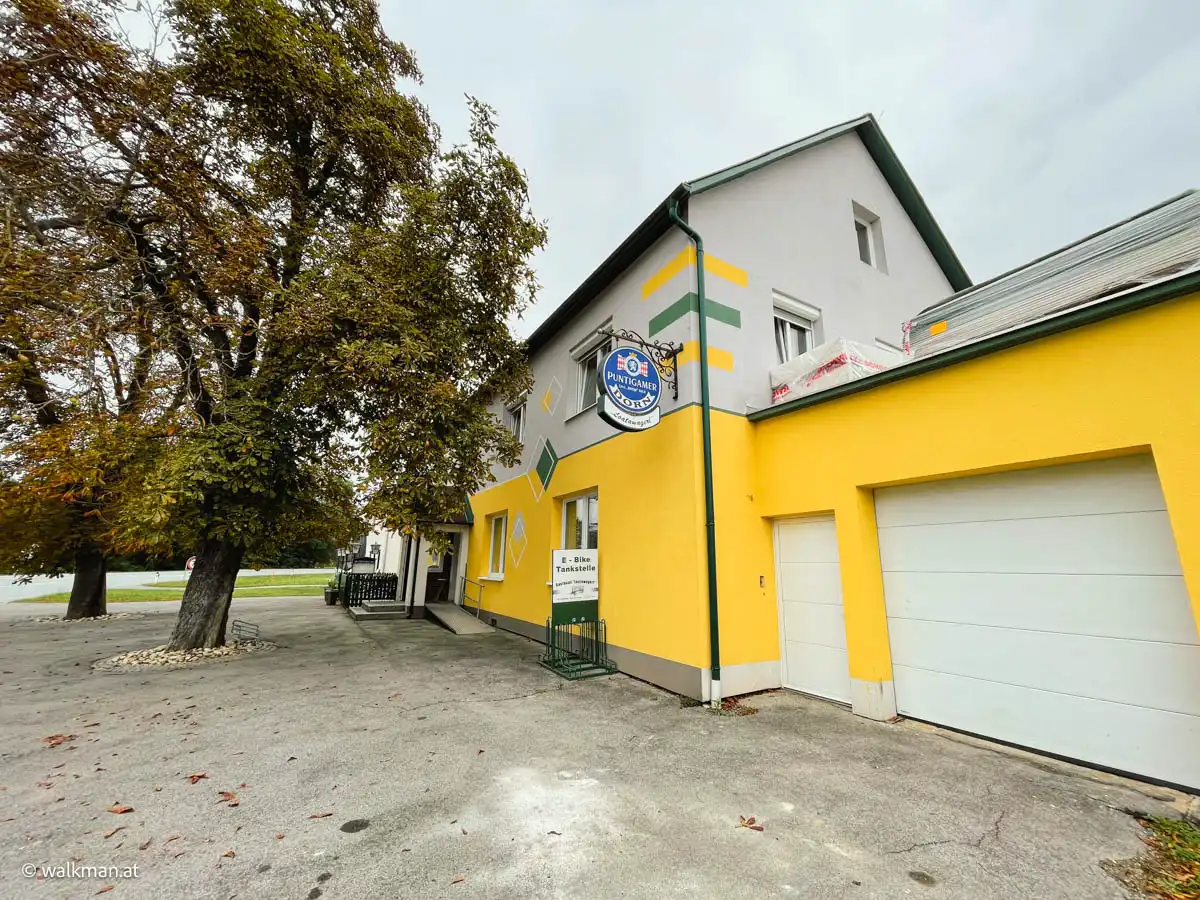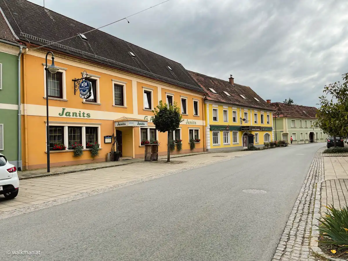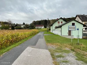 Der nächste Ort, den wir erreichen, ist Burgauberg. Hier marschieren wir an einem Gasthaus vorbei. „Loatawagerl“ – so der Name des Lokals. Ist aber geschlossen. „Montag Ruhetag“. Das müssen wir also an einem anderen Tag erkunden. Wäre aber auch in geöffnetem Zustand nicht anders gewesen. Hier war heute noch keine Pause geplant.