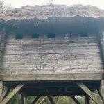 Ein paar Biegungen später erblicken wir zu unserer Rechten dann auch den Namensgeber dieser Tour: Die Tschartake heißt uns bei Streckenkilometer 2,1 herzlich willkommen. Wuchtig und mit ihren kleinen Sichtschlitzen auch ein wenig verschlagen, wirkt das alte Bauwerk. An einer Ecke ist das Schilfdach ein wenig desolat. Aber in Summe wirklich sehr gut erhalten.