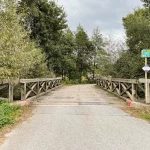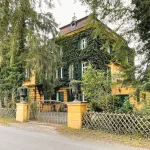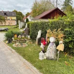 Vorbei an einer alten, schön anzusehenden, herrschaftlichen Villa und teils kreativ geschmückten Vorgärten. Über eine Brücke aus dem Ort hinaus.