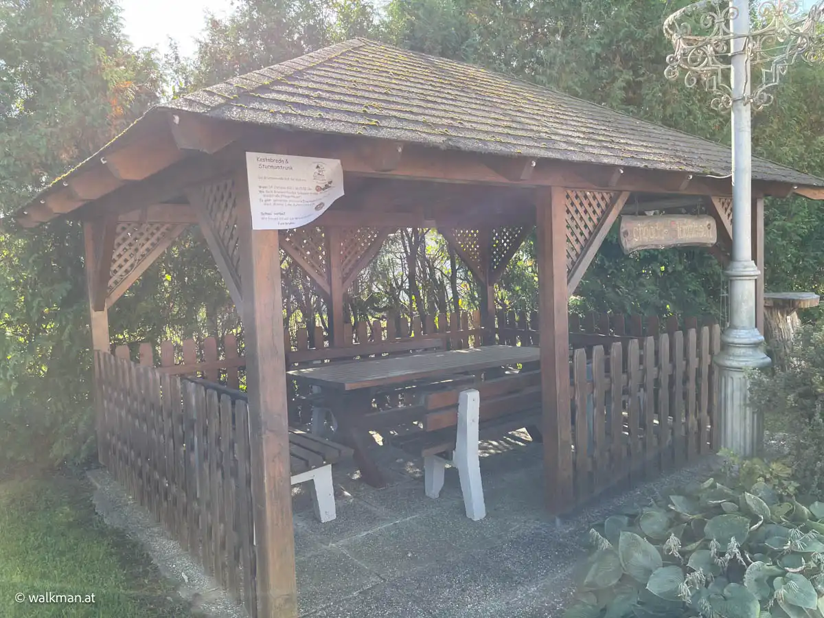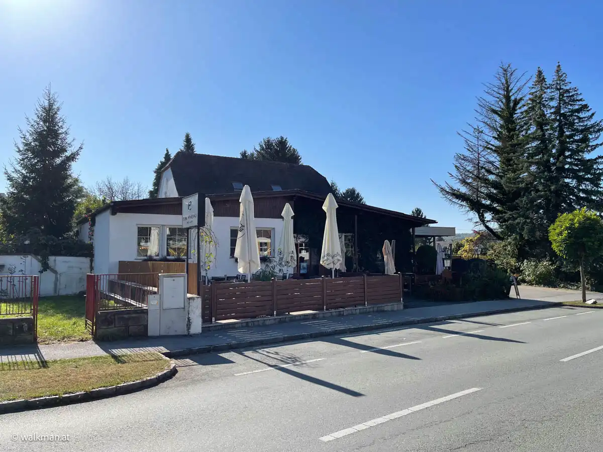 Doch heute wandere ich flott weiter und bin kurze Zeit später, vorbei am Gastgarten des ehrwürdigen „Kastell“, in dem auch gut zu speisen wäre, auch schon wieder am P+R beim Auto angelangt.