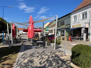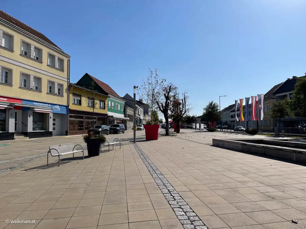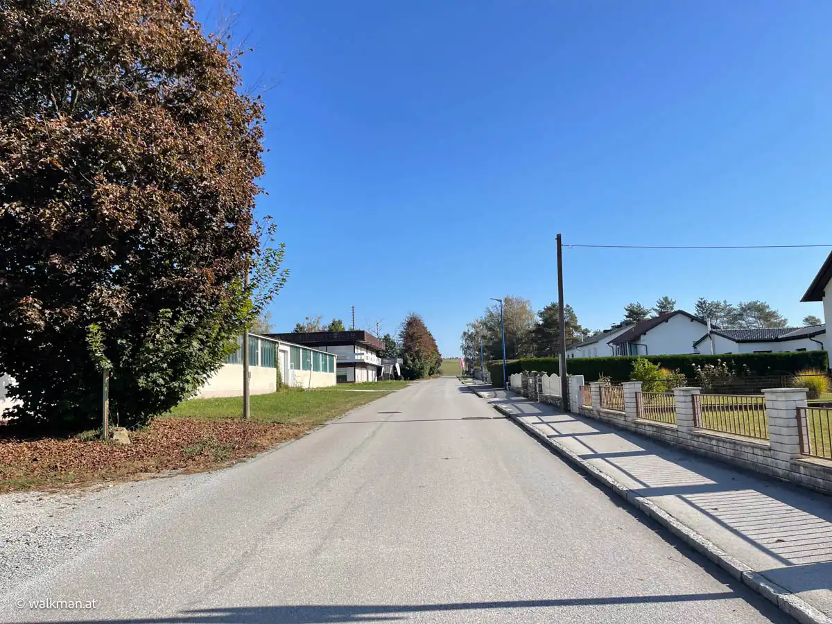 Und weil es heute auch ziemlich windstill war, beschlossen wir abermals in Stegersbach zu wandern. Diesmal vom Hauptplatz zur Firma Gloriette hinauf und über das weiße Kreuz an der Bundesstraße entlang der Schoaderstraße wieder zum Hauptplatz zurück.