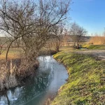 Wer das ganze Areal, also eine große Runde bis zum nördlichen Ende (wie hier in der gpx Datei aufgezeichnet), gehen möchte, muss dort, nach der Schleuse, einen kleinen akrobatischen Akt durch einen kleinen Graben vollziehen. Ist aber auch nicht weiter schlimm, nur eben weniger bequem. Von dort aus dann den Feldweg zurück bis zum großen Teich.