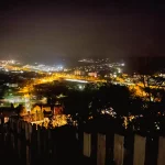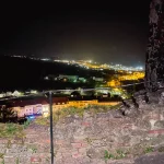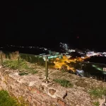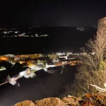 Der Blick hinunter hat auch irgendwie etwas Unwirkliches. Nicht das Güssing jetzt ein kleines Örtchen wäre. Aber eben auch keine richtig große Stadt. Aber jetzt, im Schein der vielen Lichter, wirkt es wie eine Großstadt a la New York. Ok, vielleicht nicht New York. London? Ne auch nicht. Wien? Na ja … ok, meine Fantasie einigt sich mit meinem Verstand auf die Größe von … Güssing. Mangels Alternativen.