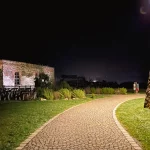 Auf dem Plateau hier findet man auch einen Pavillon und einen Kräutergarten. Zumindest am Tag ist dieser, von den Güssinger Gärtnern gehegte und gepflegte Garten, sehenswert. Jetzt sehen alle Pflanzen, trotz der Beleuchtung irgendwie gleich aus.