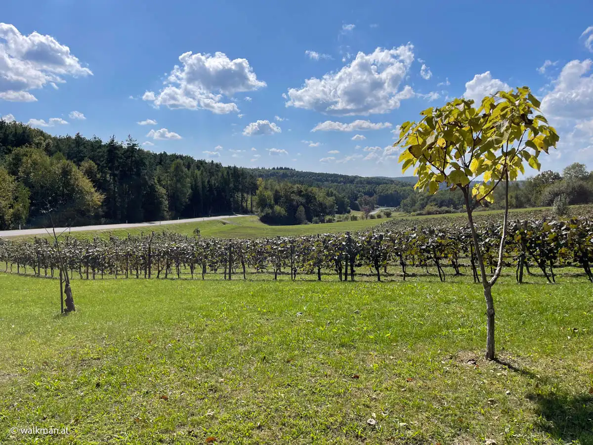 Einen Teil des Berges war ich ja zuletzt bei meiner Rundwanderung von Heiligenbrunn über Deutsch-Bieling und Reinersdorf ja bereits gegangen. Und die schöne Aussicht wollte ich Manuela natürlich nicht vorenthalten. Außerdem war das Wetter heute perfekt für eine Einkehr in eine der vielen Buschenschanken in der bekannten Kellergasse.