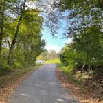 Ein paar Fotos später sind wir dann schon wieder unterwegs, in das Waldstück hinein, das auf der gegenüberliegenden Seite beginnt. Nun wird es wieder angenehm schattig und kühl. Gefällt uns.