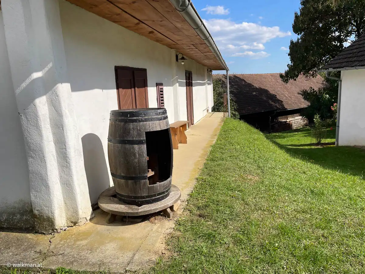 Was uns noch gefällt ist, das man hier auch ein altes Kellerstöckl mieten kann. Mit Aussicht. Das verrät uns zumindest ein hölzernes Schild am Weg. Das wäre mal ein entspanntes Wochenende wert?!