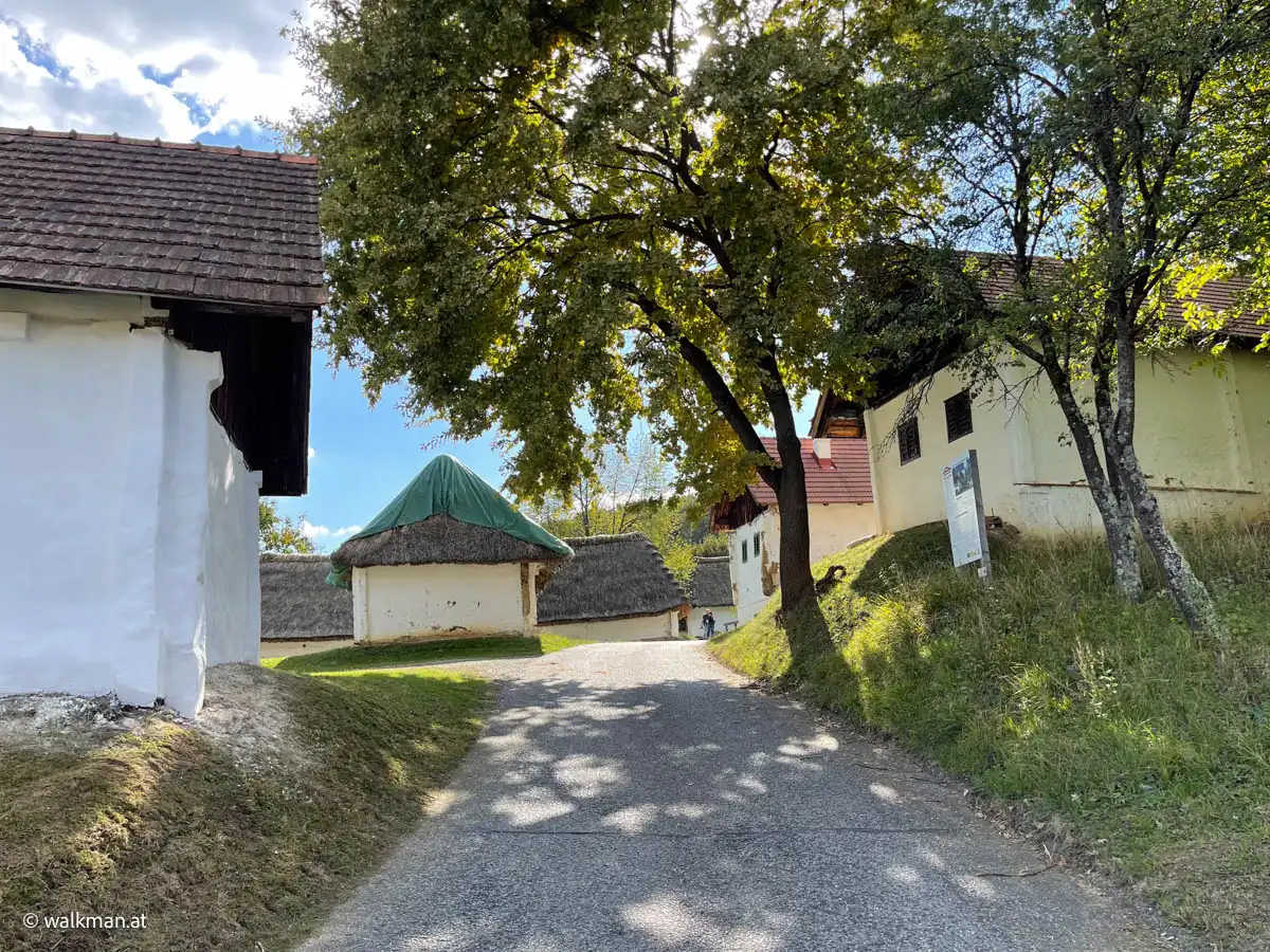 Und der Rahmen hier, die vielen alten Kellerstöckl, sind wirklich schön. Offensichtlich werden auch weitere Stöckl hergerichtet und/oder saniert. Darauf weisen zumindest ein paar, sorgsam mit Planen Abgedeckte, hin, die auf ihre „Wiederauferstehung“ warten. Sollte nicht mehr so lange dauern.
