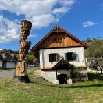 Vom Parkplatz aus wandern wir zunächst in den Ort hinab. Hier befinden sich auch schon die ersten „Points“ für die „Fotografier-Wütigen“ unter uns. Zwischen den Bäumen blitzt bereits ein wenig Panorama von Heiligenbrunn durch.