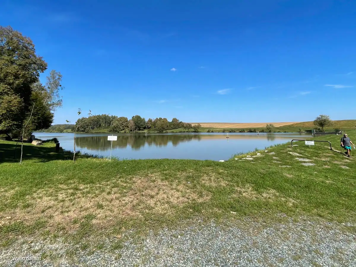 Gepflegt und frisch gemäht. So präsentiert sich der Urbersdorfer Stausee bei meiner folgenden Umrundung. Hier wird sichtlich darauf geachtet das Ufer als Naherholungsgebiet in Schuss zu halten. Gefällt mir. Das ist nicht überall so an den Teichen im Bezirk. Manch einer wird auch seinem Schicksal überlassen. Hier aber nicht.
