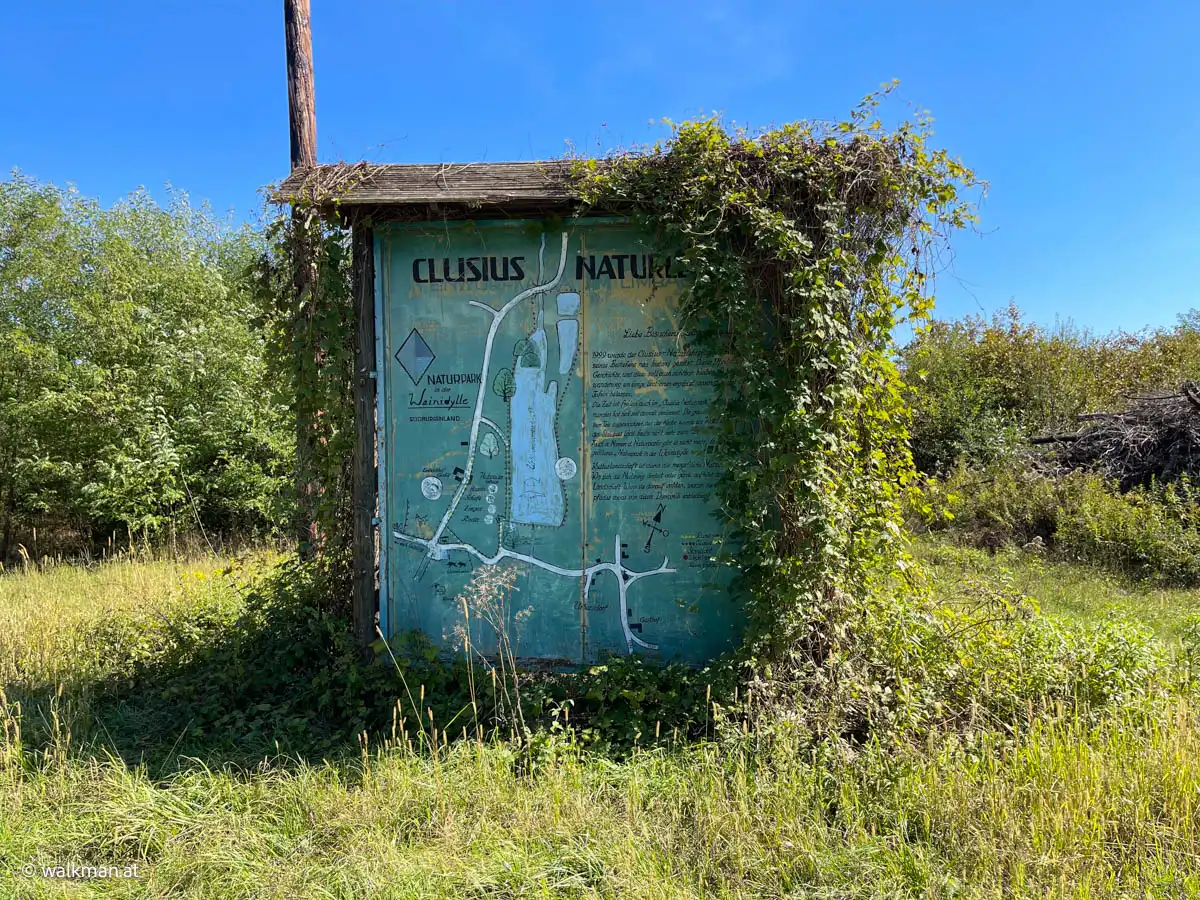 Gleich nach der Brücke führt der Weg wieder in den Wald hinein und diesmal am westlichen Ufer entlang zurück. Die gesamte Umrundung verbirgt auch einen, mittlerweile mehr oder weniger ehemaligen (so hat es zumindest den Anschein), Naturlehrpfad. „Clusius“, so sein Name. Von den einzelnen Stationen ist zwar nicht mehr viel zu sehen und trotzdem hat er von seiner Schönheit und Abwechslung nichts verloren.