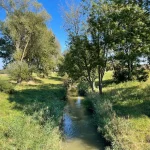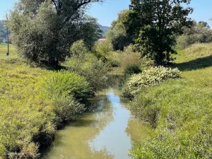 So vergeht die Zeit im Nu und bald bin ich, an der Kläranlage vorbei, auch schon an der Strembrücke angekommen. Hier habe ich nun die Wahl. Auf der linken Seite den angenehmeren Schotterweg entlang der Strem, nach Süden? Oder rechtsseitig den Wiesenweg? Ich entscheide mich für den Wiesenweg. Ist zwar etwas schwerer zu gehen aber dafür mehr Natur. Das gönn ich mir heute.