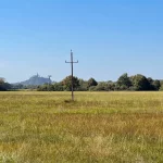 Hier halte ich mich nun rechts und wandere den Rad- bzw. Güterweg entlang, der von Urbersdorf nach Güssing führt. Ein kleines Stück bergauf und dann flach weiter. Angenehm zu gehen und ohne große Herausforderungen komme ich bald an meiner Kreuzung an, beim Jesuskreuz. Hier muss ich nun links hinunter wandern. Den Schotterweg entlang bis zur Bundesstraße.