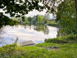 Bei etwa Kilometer 0,4 hat man die Möglichkeit, die Tour abzukürzen und zwischen den beiden Fischteichen über den Damm, zum Ausgangspunkt zurück, zu wandern. Oder man geht, so wie auf meiner Route dargestellt, die größere Runde bei der man beide Teiche umrundet.
