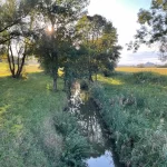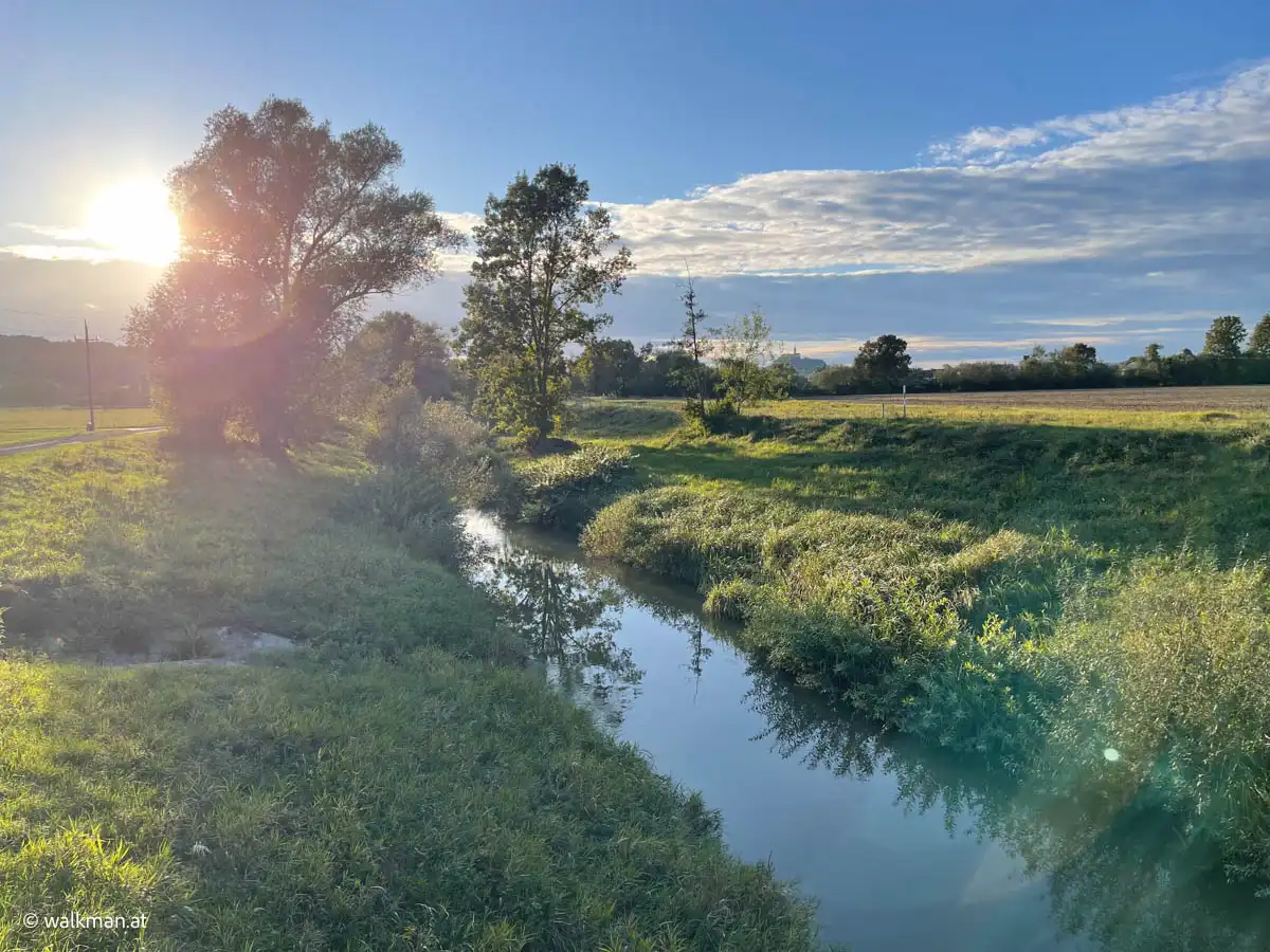Nun spaziere ich auf einem geschotterten Feldweg am Ufer der Strem ostwärts. Abermals auf einer langen Geraden, die mich bis zu Kilometer 3 auf meiner Tour führen wird. Mitunter sind ja einfache, unspektakuläre Touren auch besonders angenehm und stressfrei zu gehen. Genau so ist es heute.