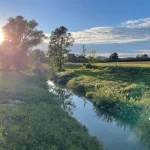 Links die Strem, rechts viel Gegend. Und in stetigem Blick dabei die Burg Güssing. Schön. Aber die „wanderbare“ Idee hatte nicht nur ich alleine. Auf diesem Abschnitt kommt mir ein Mann mit Hund entgegen.