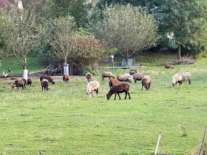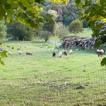 Hier muss ich auch abermals abbiegen. Wieder nach links. Ich wandere ein Stück weit neben dem Gehege der Schafe entlang und ernte, nebst missbilligenden Blicken, auch abwertendes Blöcken, ob meiner Anwesenheit. Wir werden vermutlich keine Freunde mehr. Müssen wir auch nicht. Mein Geschmack ist weit von Lammbraten und Schafwolle entfernt. Wobei, gerade deswegen müssten wir uns ja eigentlich verstehen. Das wissen die Tiere aber leider nicht.